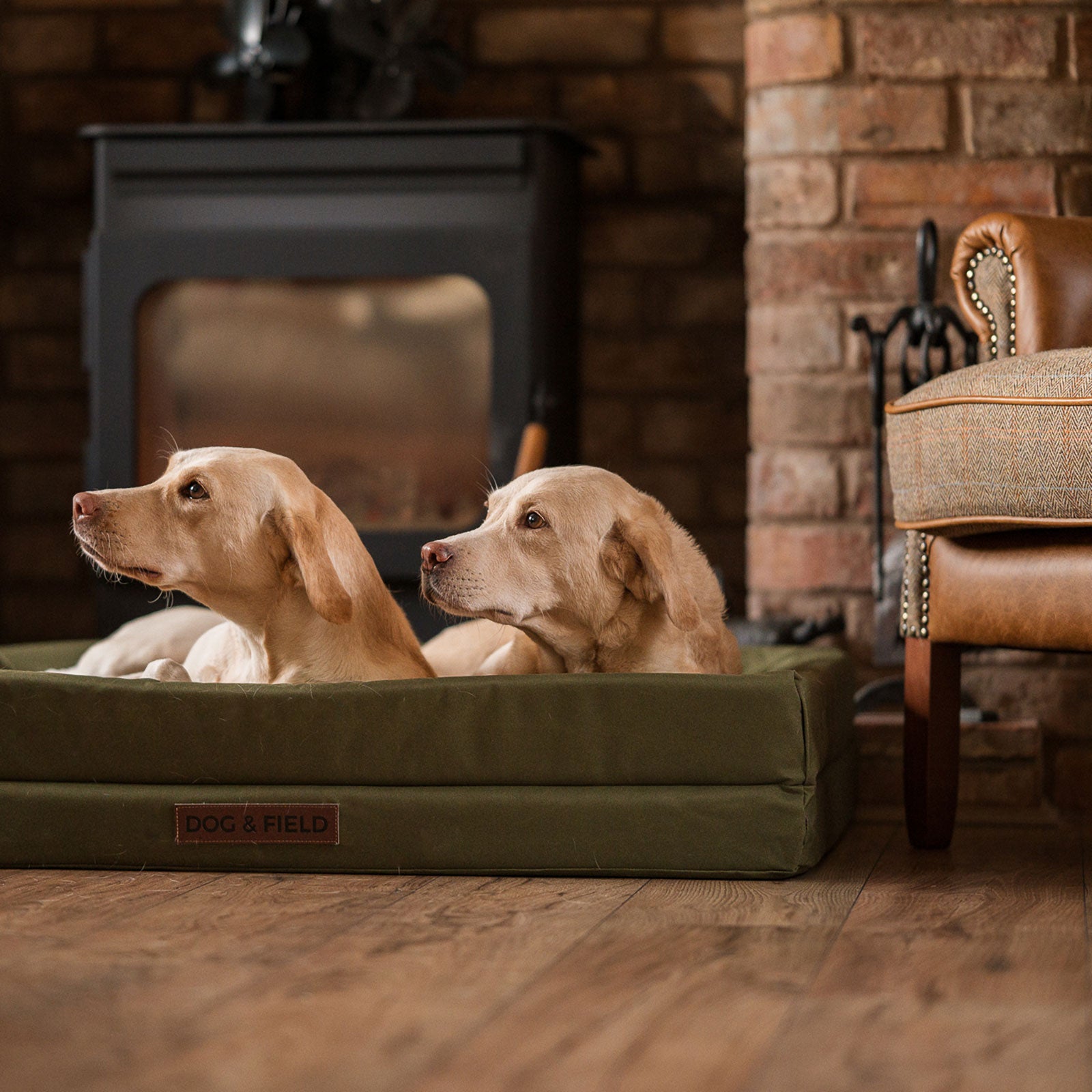 Köp härEn ortopedisk bädd från Dog & Field, 100 x 70 cm, som snabbt blir hundarnas favorit. Klassiskt grön med brun läderetikett!