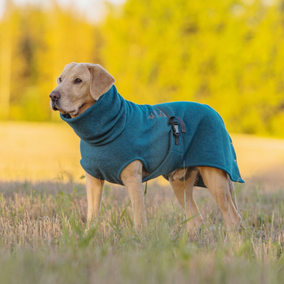 Köp härHandsydda ulltäcken från finska Noutajakauppa. En genomtänkt, smart design som håller hela din hund varm!