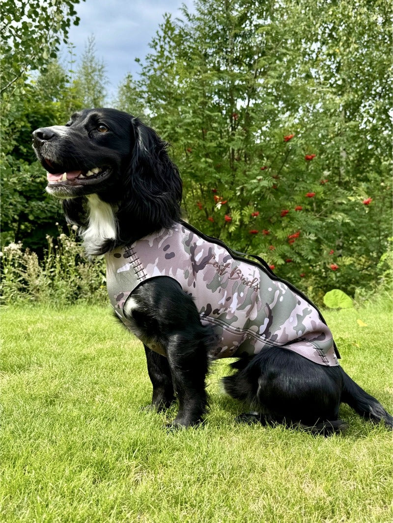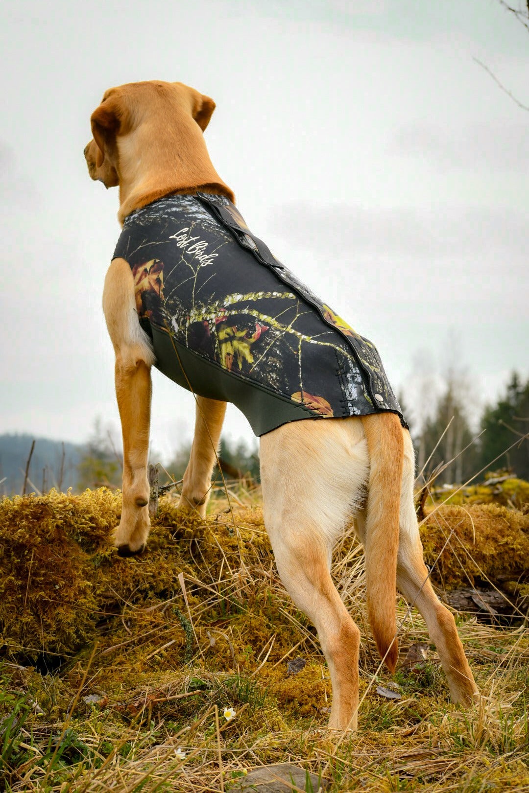 Lost Birds Neoprenväst för hundar är en värmande väst för din hund i kalla vatten. Neoprenvästen håller hela ryggen varm och sträcker sig till hundens svansrot för att skydda, värma och förhindra att vattensvans uppstår.